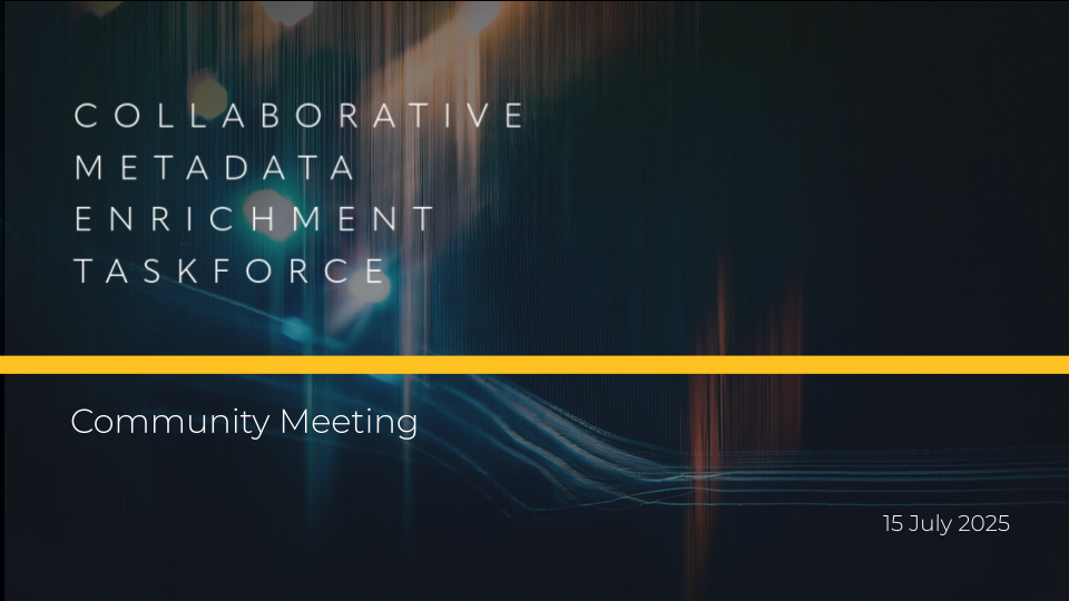 On March 5, 2025, the Collaborative Metadata Enrichment Taskforce (COMET) conveners held a wider community webinar to introduce the work of COMET and it's Community Call to Action.
